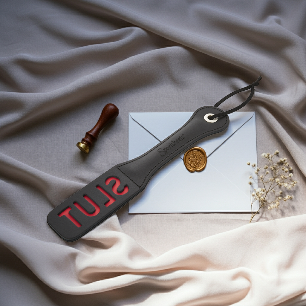 Do you really need to spell it out for them? This time, make sure your partner never forgets what they are. Leave a lasting impression with a high-quality, hand-stitched leather slapper that clearly labels your lover a S-L-U-T! A heavy smack on the ass from this attractive impact play tool will imprint that dirty little word in painful red welts.